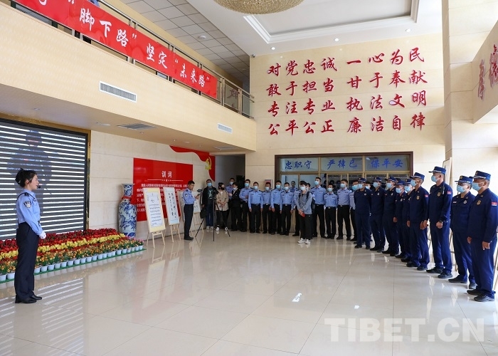 中國西藏網(wǎng)訊 夏日的西藏日喀則邊境管理支隊營區(qū)熱鬧非凡,日喀則海關、日喀則團市委、日喀則市退役軍人事務局、日喀則市教育局、日喀則市消防救援支隊、日喀則市反恐特偵支隊等友鄰單位干部代表與支隊民警齊聚在支隊機關觀展覽、品佳作、參觀警史館,喜迎二十大。
