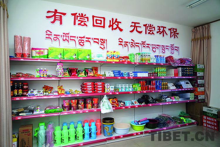 嘎拉村“綠色銀行”兌換商店里的可兌換商品品種越來越多了。益西加措 攝