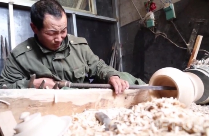 圖為拉郊鄉村民在制作木器
