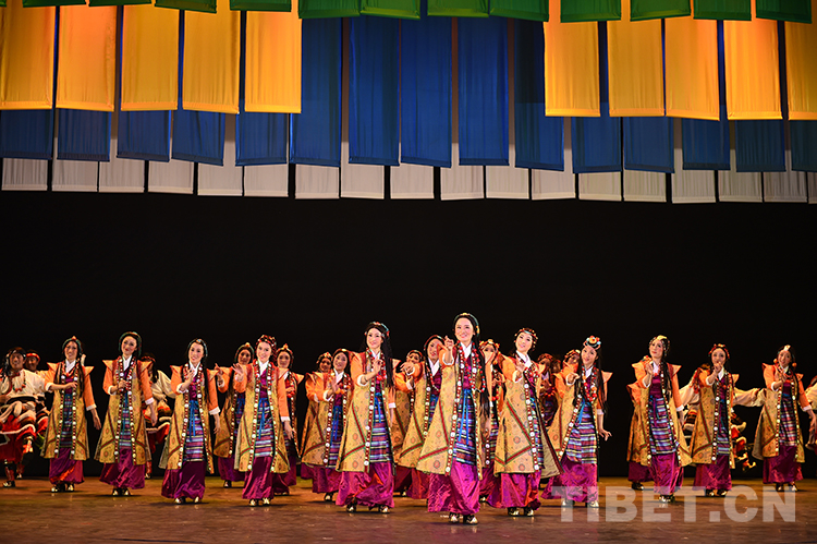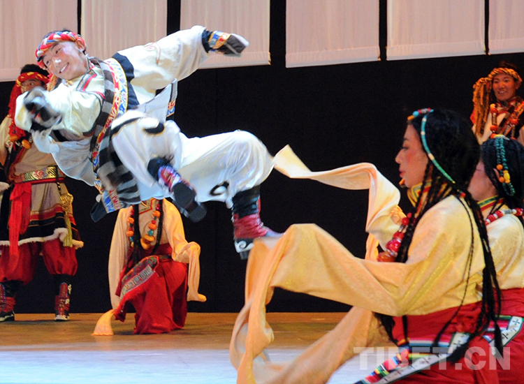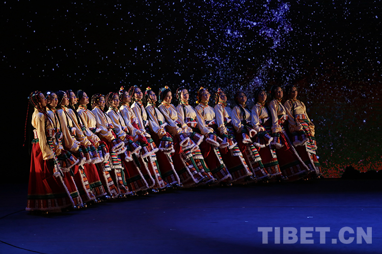 這是班戈縣諧欽民間藝術團的年輕舞蹈演員在北京國家大劇院演出時的劇照(唐召明2015年10月13日攝)