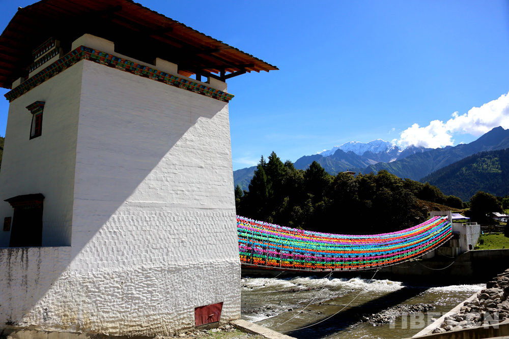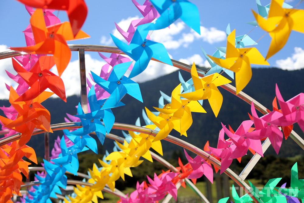 圖為魯朗小鎮景區旁的“網紅橋”上掛滿了顏色各異的風車 攝影:王佳豪
