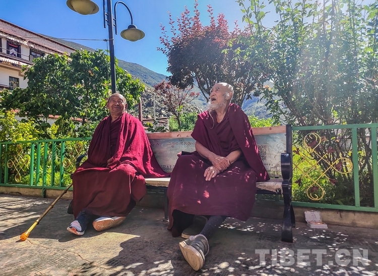 圖為僧人在寺廟養老院內曬太陽。攝影:拉姆
