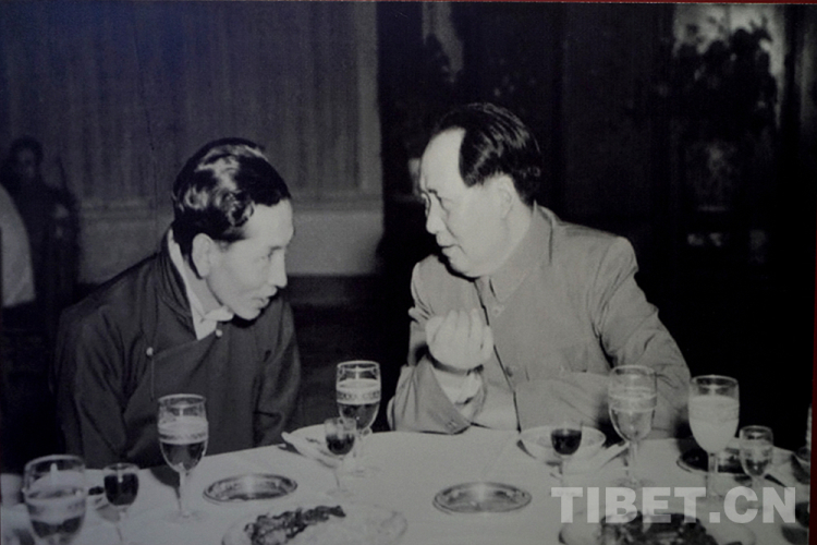 圖為1951年5月24日,毛澤東主席設(shè)宴慶祝《中央人民政府和西藏地方政府關(guān)于和平解放西藏辦法的協(xié)議》的簽訂。宴會(huì)上,毛主席與阿沛?阿旺晉美(左)親切交談
