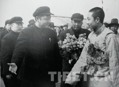 習(xí)仲勛與十世班禪第一次會(huì)面是在1951年4月中旬。當(dāng)時(shí)班禪進(jìn)京向毛主席致敬,途經(jīng)西安時(shí),習(xí)仲勛作為西北局和西北軍政委員會(huì)主要負(fù)責(zé)人,到機(jī)場(chǎng)迎接。甫下飛機(jī),這位英俊的少年活佛便激動(dòng)地對(duì)習(xí)仲勛說(shuō):“我們是專(zhuān)程去北京向毛主席致敬的!我要把藏族人民對(duì)中央人民政府和毛主席的良好祝愿親口轉(zhuǎn)達(dá)給毛主席。”