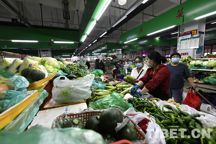 發布會后,記者掃碼、測溫后進入拉薩市柳梧農貿市場進行實地探訪。農貿市場外,市民自覺遵守疫情防控措施,有序進入;農貿市場內,經營者和前來購物的市民均佩戴好口罩,選購產品。不管是肉類區、蔬菜區,還是水果區、水產區均供應充足,未出現斷檔缺貨現象,價格相較以往并無較大波動。(中國西藏網 記者/王媛媛)