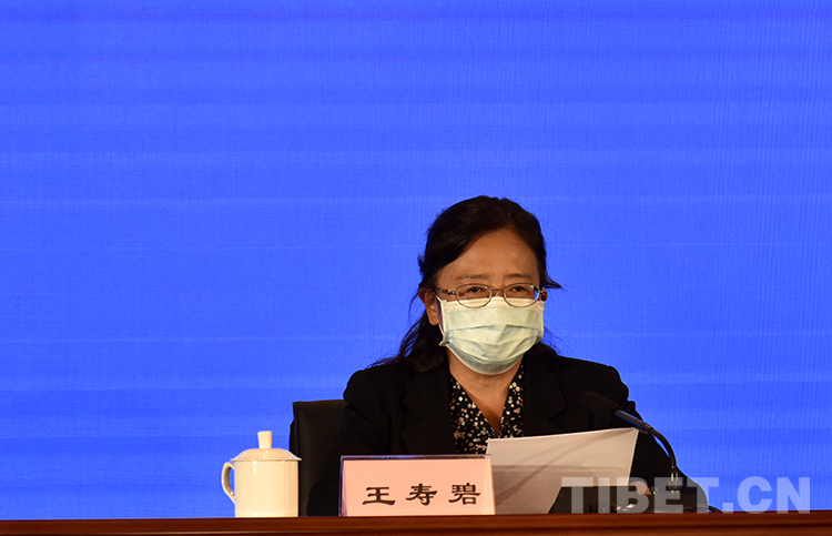 圖為西藏自治區新型冠狀病毒肺炎疫情防控工作第三場新聞發布會上,西藏自治區衛生健康委員會一級巡視員王壽碧介紹西藏新冠肺炎疫情防控工作最新情況 攝影:王媛媛