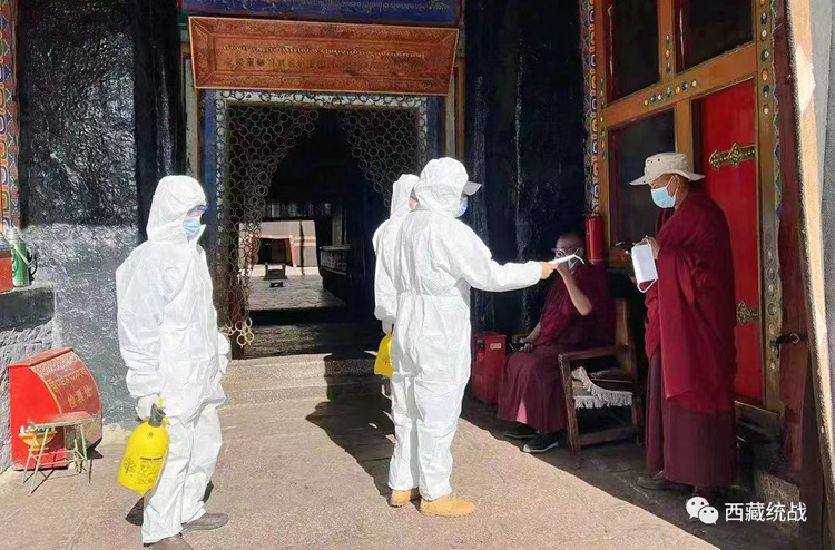 圖為西藏自治區日喀則市薩迦寺管委會在寺廟內開展疫情防控工作 圖片來源:西藏統戰微信公眾號