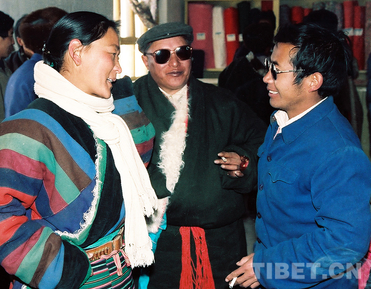 這是那曲地區(qū)“訪問團(tuán)”人員在參觀文部辦事處小學(xué)(唐召明1989年12月份攝)