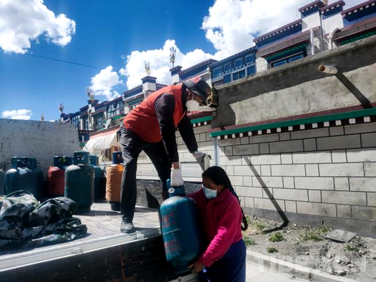 志愿服務隊志愿者們通過電話、微信群等方式排查,詢問并收集群眾基本生活物資(面粉、大米、煤氣罐加氣、蔬菜)需求,安排專人和車子到洛扎縣城進行代購,并以最快的速度把物資送到群眾家門口。