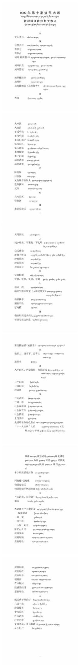 據(jù)了解,為使專業(yè)術(shù)語譯文更加精準(zhǔn)規(guī)范,通俗易懂,做到統(tǒng)一標(biāo)準(zhǔn),西藏自治區(qū)藏語委辦(編譯局)本著表意準(zhǔn)確、概念清晰、通俗易懂的原則,最終審定通過新冠肺炎防疫方面的術(shù)語和短語91條。