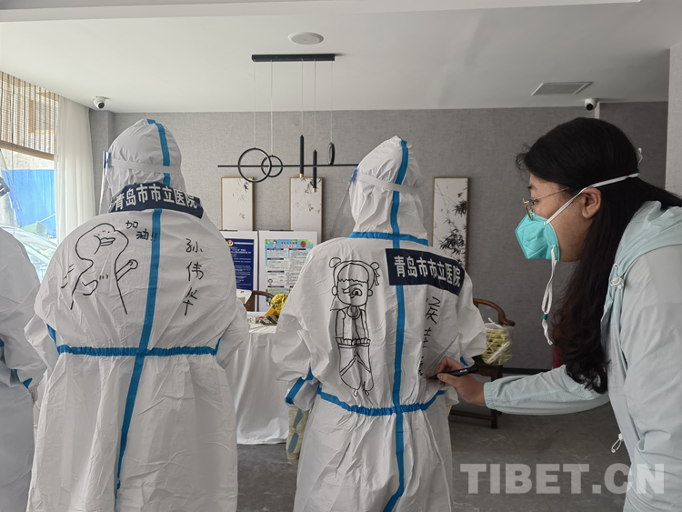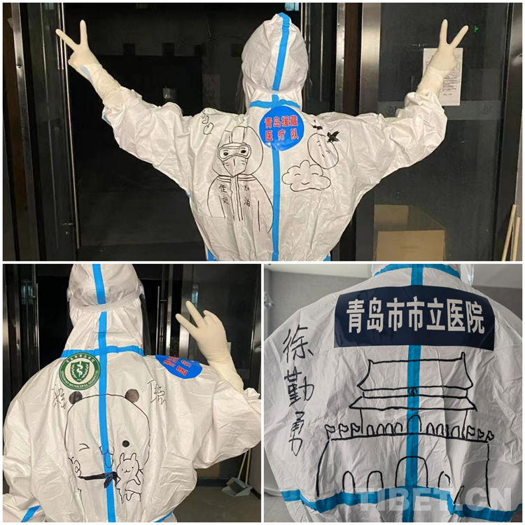 中國西藏網訊 青島援藏醫療隊自8月17日進藏以來, 隊員們無論工作多累多難、高原反應有多難受,都沒有一句怨言,依然堅持在西藏自治區日喀則市戰“疫”一線。工作之余,來自青島市市立醫院本部ICU的鐘翔宇發揮出了她的“隱藏技能”——在醫療隊的“大白”身上畫上漫畫,用表情包背到身上的方式給隊友們加油鼓勁兒。身著漫畫“戰袍”的隊員們斗志昂揚,朝氣蓬勃,互相鼓勵幫助,完成了一天天的工作任務。而這些古靈精怪的漫畫,在戰“疫”一線也成了一道靚麗的風景線。(中國西藏網 記者/次旦拉姆 由桑珠孜區融媒體中心供稿)
