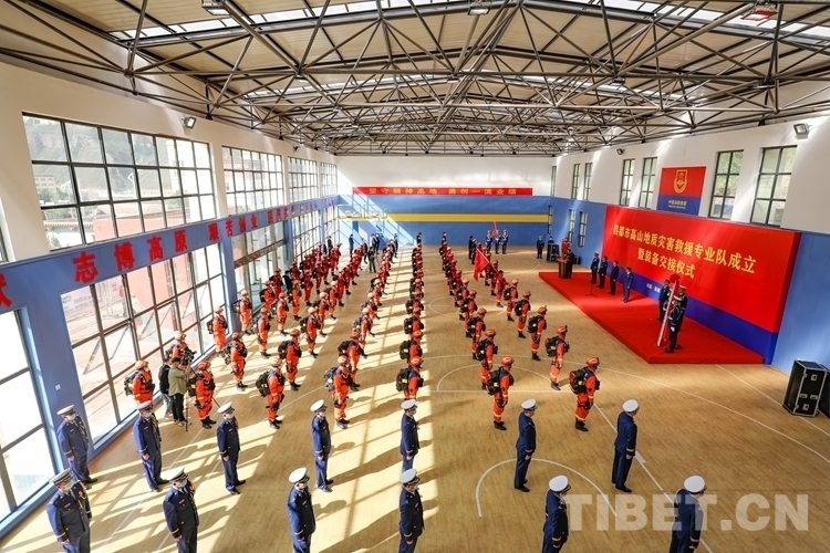 圖為昌都市高山地質災害救援專業隊成立暨裝備交接儀式現場