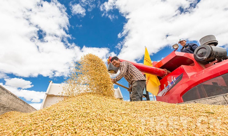 圖為日喀則農(nóng)牧民秋收 攝影:趙耀
