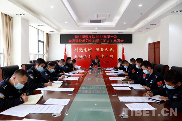 圖為西藏邊檢總站執(zhí)法調(diào)查支隊(duì)黨委理論學(xué)習(xí)中心組專題學(xué)習(xí)黨的二十大精神 攝影:劉明陽