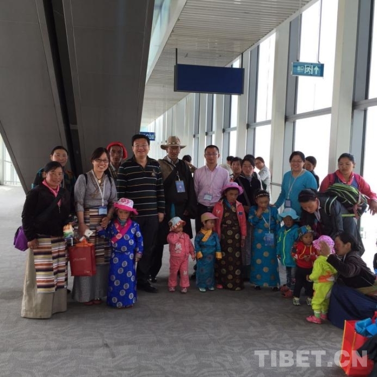 圖為李靖帶西藏先天性心臟病患兒進京手術