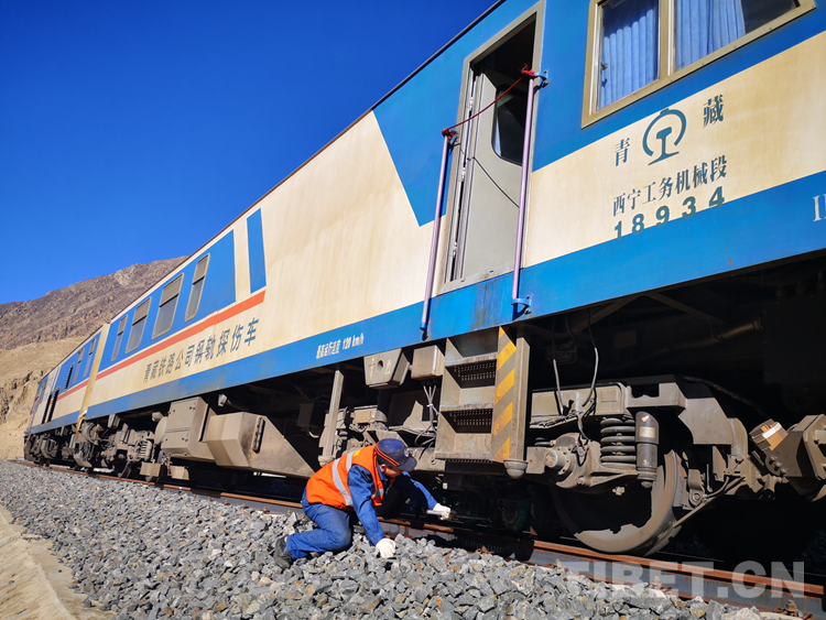 1月24日早上9時28分,一輛藍色的鋼軌探傷車緩緩駛出拉薩站前往日喀則西站,全程保持小于70公里每小時的速度前進,目的是精確檢測拉日鐵路的鋼軌是否存在內部損傷,為高原鐵路鋼軌體檢。