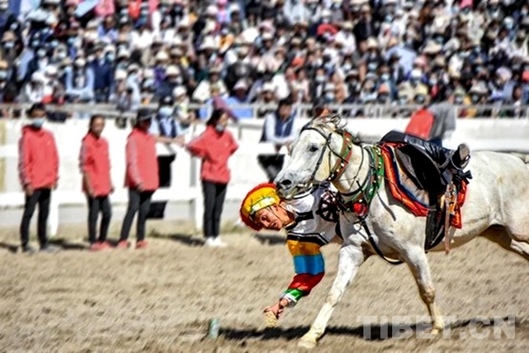 圖為入選2022中華體育文化優(yōu)秀節(jié)慶項目雪頓節(jié)民族傳統(tǒng)馬術表演 攝影:德吉卓瑪