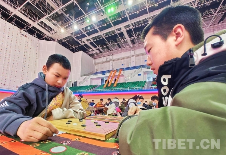 圖為2023拉薩市首屆“中信杯”藏棋棋王(雙王棋)爭霸賽比賽現場,選手們正在緊張對弈 攝影:王佳豪