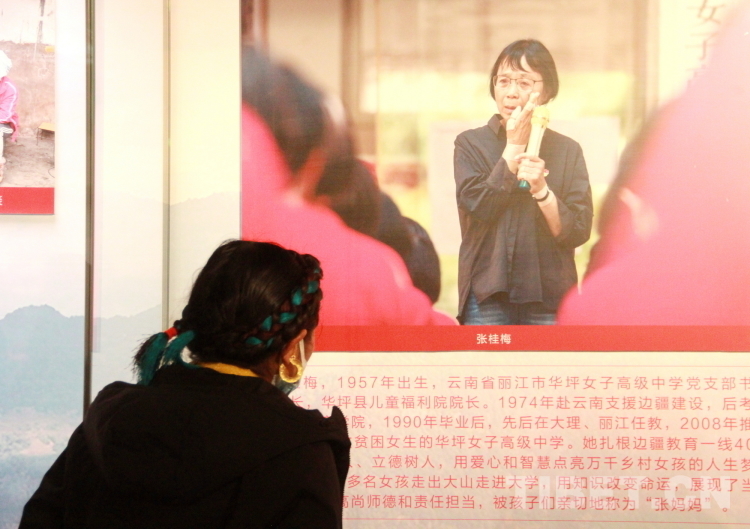 在眾多參觀展覽的人群中,有一位身著藏裝的西藏基層婦聯干部,十分醒目,她總是笑意盈盈,用手機拍攝記錄著展覽的重點,時不時與同伴分享心得。她叫索朗德吉,是來自西藏自治區林芝市工布江達縣江達鄉太昭村的婦聯主席,“通過觀看展覽,我系統了解到,百年來,我們黨始終堅持把實現婦女解放和發展、實現男女平等寫在自己奮斗的旗幟上。現在的西藏,男女平等,婦女也能當領導,在工作崗位上展現著‘婦女能頂半邊天’的巾幗力量。這事兒如果放到舊西藏,那是想都不敢想的。”索朗德吉說,“在中國共產黨的領導下,我們村早已發展成為天上有航線,地面有鐵路,生活富裕的小康村,聽黨話、跟黨走是太昭人不變的信念,回去后我要把聽到的、看到的、學到的,不光講給村里人,更要講給縣里人,激發出她們的民族自豪感,共同澆灌民族團結的參天大樹。”