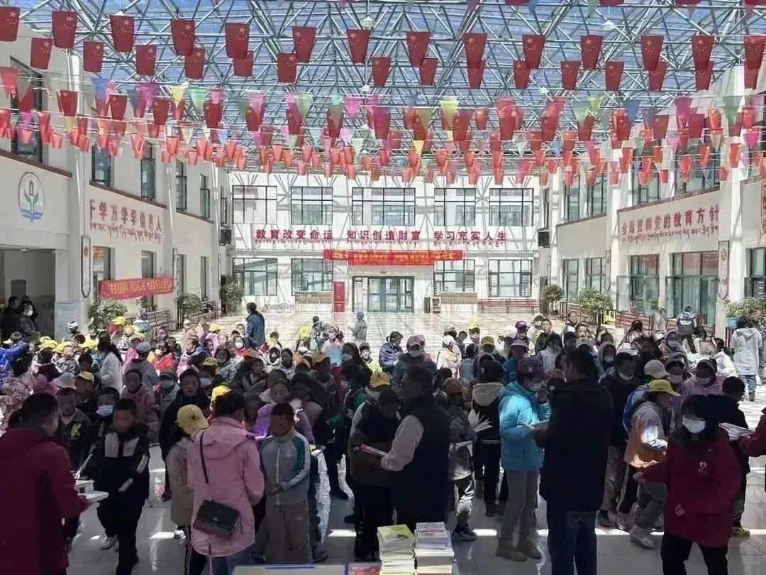 圖為亞?wèn)|縣團(tuán)縣委組織西部志愿者赴堆納鄉(xiāng)小學(xué)開(kāi)展“書香傳愛(ài)助成長(zhǎng),滬藏兩地心連心”校園讀書節(jié)活動(dòng)暨上海五角場(chǎng)街道團(tuán)工委公益捐書儀式現(xiàn)場(chǎng)