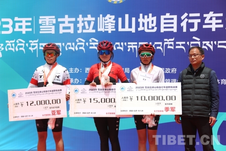 圖為獲得女子精英組比賽冠軍老隊員車隊選手白瑪央吉、亞軍區體校隊選手曲美巴措、季軍區體校隊選手索朗益西 攝影:德吉卓瑪