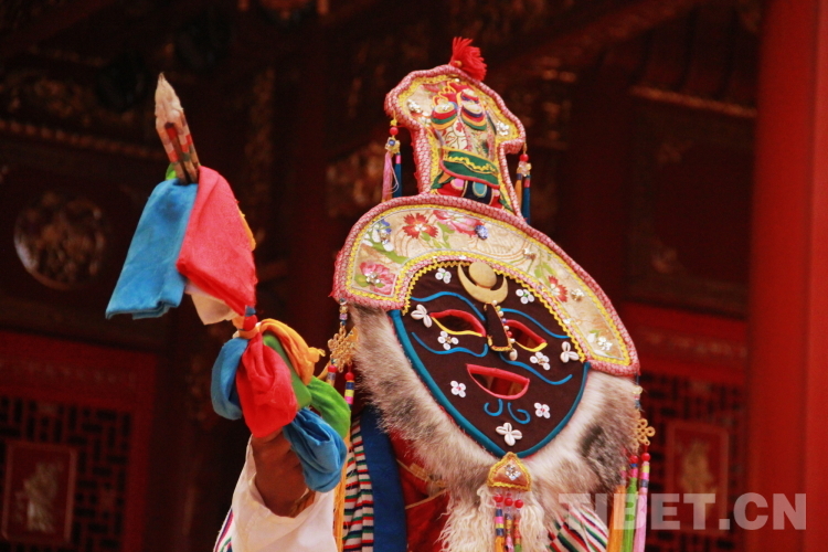圖為拉薩市城關(guān)區(qū)娘熱民間藝術(shù)團(tuán)演員表演國家級(jí)非物質(zhì)文化遺產(chǎn)“堆諧”攝影:劉莉