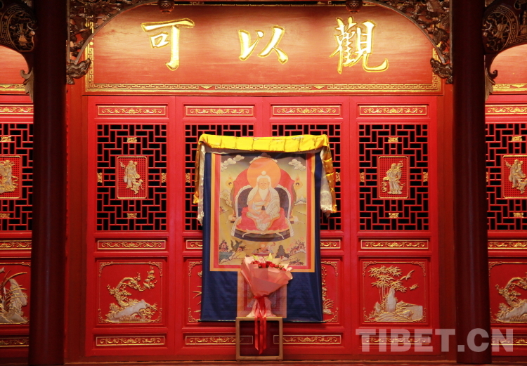 拉薩市城關(guān)區(qū)娘熱民間藝術(shù)團(tuán)成立于20世紀(jì)70年代,1999年被正式命名為“拉薩市城關(guān)區(qū)娘熱民間藝術(shù)團(tuán)”。40多年來,藝術(shù)團(tuán)以繼承和發(fā)展藏戲?yàn)榧喝危D昊钴S在基層演出,深受歡迎。圖為拉薩市城關(guān)區(qū)娘熱民間藝術(shù)團(tuán)演出時(shí)舞臺(tái)上供奉的湯東杰布唐卡,湯東杰布是藏族民間傳說中創(chuàng)建藏戲的戲神和修建橋梁的工匠“祖師”攝影:劉莉