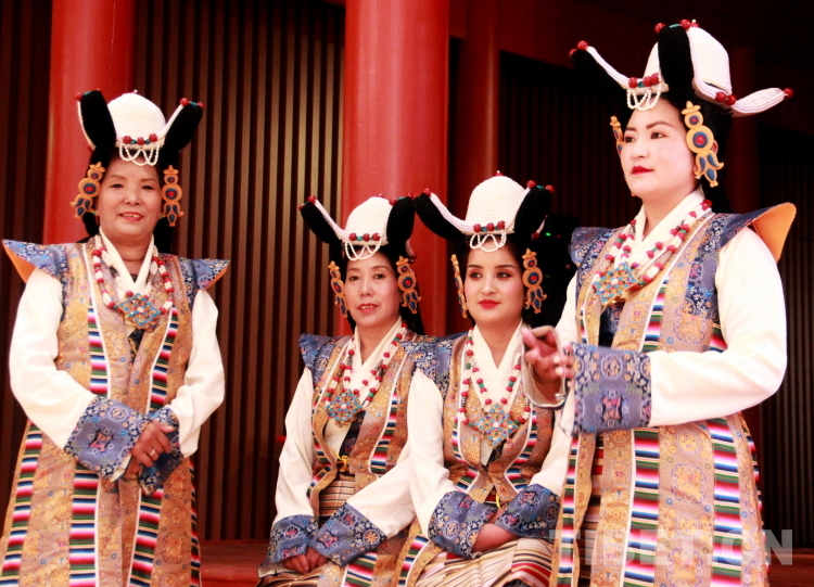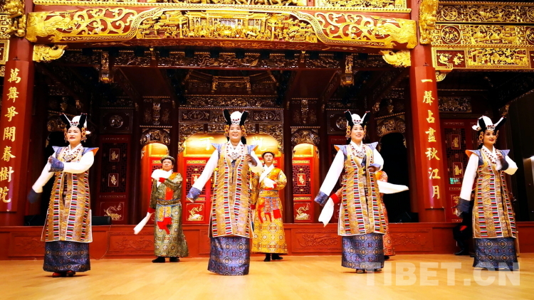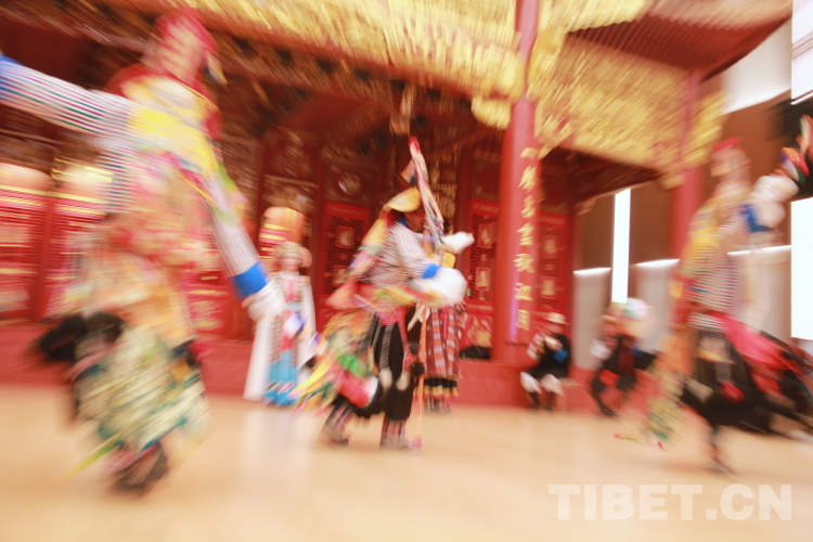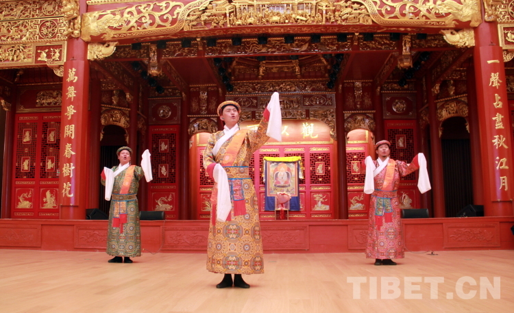 圖為拉薩市城關(guān)區(qū)娘熱民間藝術(shù)團(tuán)演員表演國家級(jí)非物質(zhì)文化遺產(chǎn)“嘎爾”攝影:劉莉