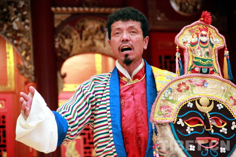 拉薩市城關(guān)區(qū)娘熱民間藝術(shù)團(tuán)成員、西藏自治區(qū)級(jí)覺木隆藏戲傳承人洛桑次仁是目前為數(shù)不多的掌握了全部“八大藏戲”唱腔、表演的戲師。圖為洛桑次仁表演藏戲唱腔《朗薩雯波》之貢桑德慶唱腔攝影:劉莉