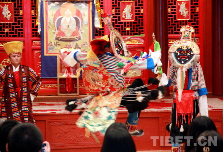 中國西藏網(wǎng)訊 記者自中國工藝美術(shù)館(中國非物質(zhì)文化遺產(chǎn)館)獲悉,6月3日至4日,該館“遇見非遺”社教活動(dòng)邀請(qǐng)到了西藏自治區(qū)拉薩市城關(guān)區(qū)娘熱民間藝術(shù)團(tuán)為觀眾展示來自雪域高原的藝術(shù)瑰寶——藏戲(拉薩覺木隆)、拉薩囊瑪和嘎爾。三個(gè)項(xiàng)目都是國家級(jí)非物質(zhì)文化遺產(chǎn)。圖為拉薩市城關(guān)區(qū)娘熱民間藝術(shù)團(tuán)表演的藏戲開場(chǎng)《溫巴頓》片段 攝影:劉莉
