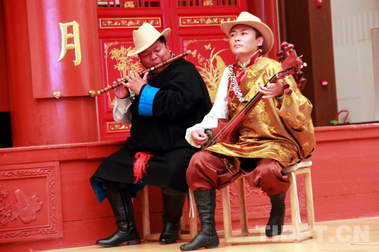 圖為拉薩市城關(guān)區(qū)娘熱民間藝術(shù)團(tuán)樂師米瑪(左)和拉巴次仁(右)為演出伴奏。米瑪是西藏自治區(qū)級(jí)嘎爾傳承人,擔(dān)任藝術(shù)團(tuán)笛子演奏、司鼓;拉巴次仁是拉薩市城關(guān)區(qū)級(jí)喇嘛瑪尼傳承人,擔(dān)任藝術(shù)團(tuán)扎木年演奏。攝影:劉莉