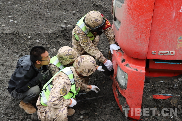 抵達(dá)現(xiàn)場后,武警官兵一邊安撫滯留群眾,給他們發(fā)放高原藥品;一邊對災(zāi)害現(xiàn)場進(jìn)行勘察,并制定科學(xué)合理的搶通方案。在指揮員的指揮下,他們采取“雙向掘進(jìn)、先通后拓”的戰(zhàn)法進(jìn)行搶通。因部分車輛深陷泥石流被困,為解救出車輛,他們利用繩索拖拽的方法對被困車輛進(jìn)行救援。