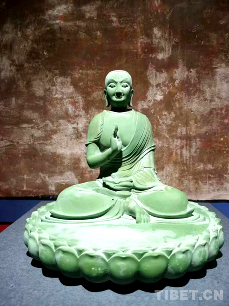 回到廈門后,蔣晟通過當(dāng)代創(chuàng)作回應(yīng)西藏的旅程。他把過往對(duì)漢式多元化塑造方式的理解,結(jié)合對(duì)于現(xiàn)代美學(xué)的詮釋,融入到西藏造像藝術(shù)的創(chuàng)作中。西藏造像藝術(shù)擁有上千年歷史,是漢藏民族交往、交流、交融的結(jié)晶,涵蓋了銅制、熔鑄琉璃、木刻、泥塑、石刻、酥油花等多種造像形式,蔣晟融會(huì)貫通,同樣以銅、琉璃、風(fēng)車木、石灰華、金箔、大漆等多種材質(zhì),結(jié)合不同的雕塑手法,回應(yīng)傳統(tǒng),并延續(xù)漢藏造像藝術(shù)交流的歷史脈絡(luò)。