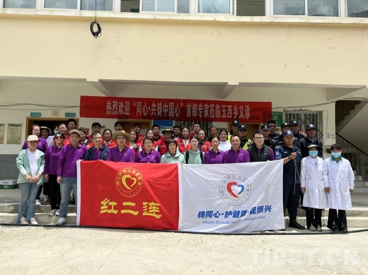圖為玉西鄉(xiāng)義診活動結(jié)束后,醫(yī)生和工作人員合影留念 攝影:德吉卓瑪