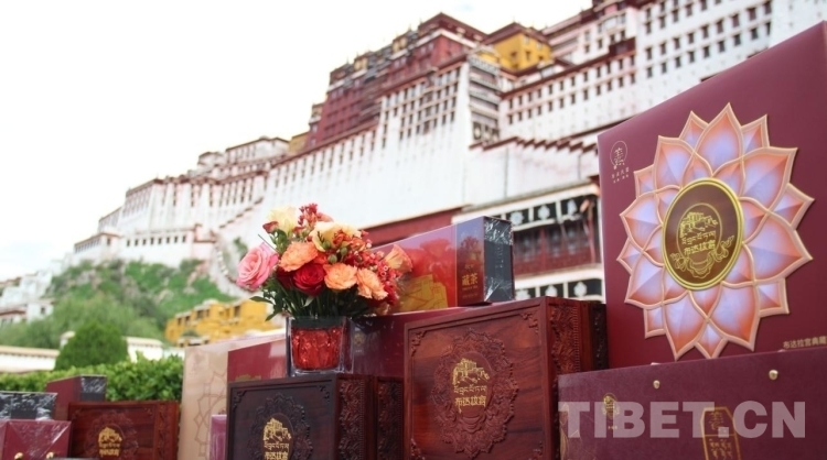圖為姜氏家族向布達拉宮捐贈金絲楠木盒典藏茶