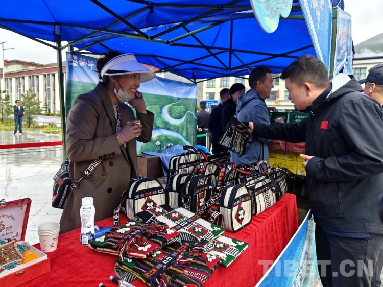 圖為活動現(xiàn)場市民在詢問展銷產(chǎn)品價格 攝影:次旦拉姆
