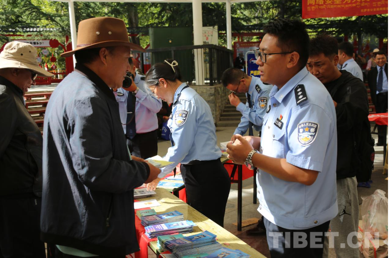 宣傳活動的主場活動設在人員較為集中的拉薩市宗角祿康公園。現(xiàn)場通過展示宣傳展板、發(fā)放宣傳資料、民警現(xiàn)場講解等形式普及網(wǎng)絡安全知識,增強群眾的網(wǎng)絡安全防范意識,提高識別和應對網(wǎng)絡危機的能力,維護國家網(wǎng)絡安全。