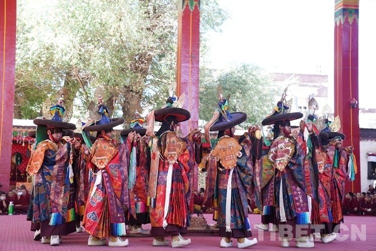 扎什倫布寺羌姆有嚴格的程序,舞蹈節(jié)奏緩慢,為了活躍場面,在每節(jié)之間,有兩名身穿藏裝飾演“波”和“莫”(即老爺爺和老奶奶)的僧人隨時出場,以詼諧幽默的啞劇小品逗得觀眾捧腹大笑。(中國西藏網(wǎng) 記者/王淑 賈華加)