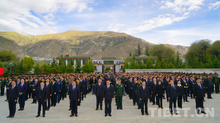 圖為西藏自治區黨政軍領導同全區各族各界干部群眾代表一起,出席向烈士敬獻花籃儀式。 攝影:趙振宇