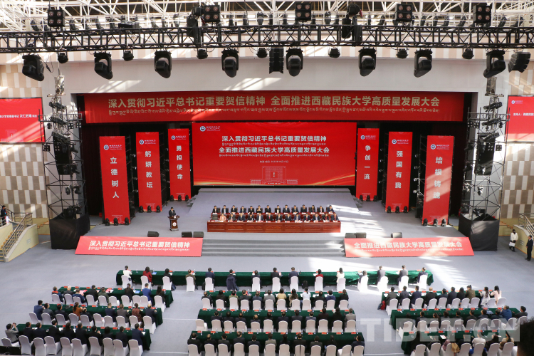 圖為深入貫徹習近平總書記重要賀信精神、全面推進西藏民族大學高質量發展大會現場