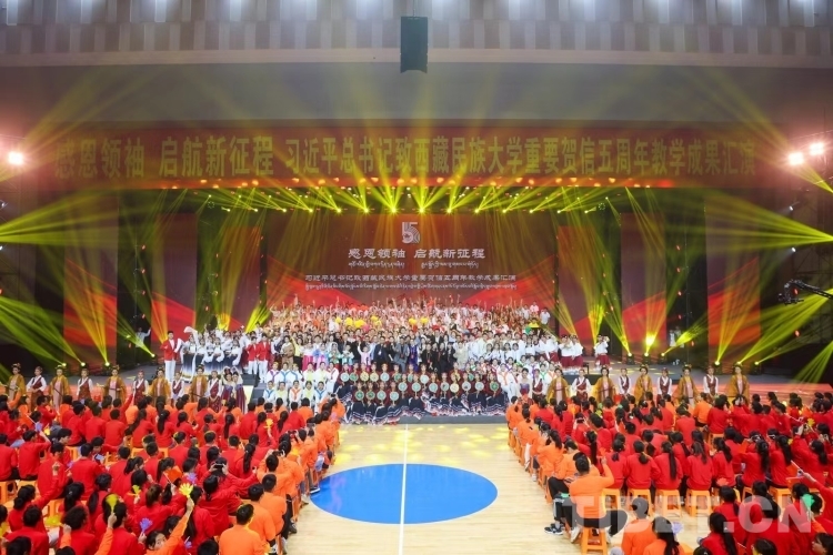 圖為習近平總書記致西藏民族大學重要賀信五周年教學成果匯演現場