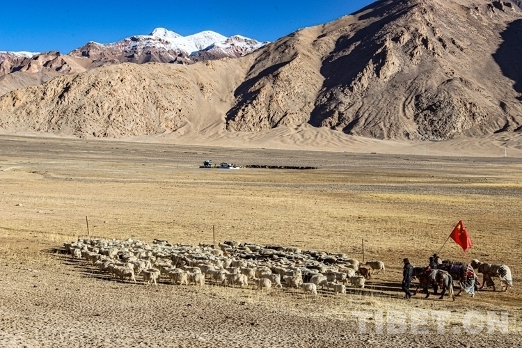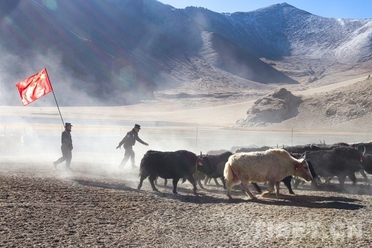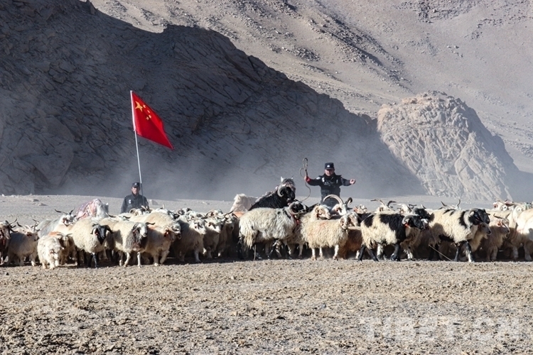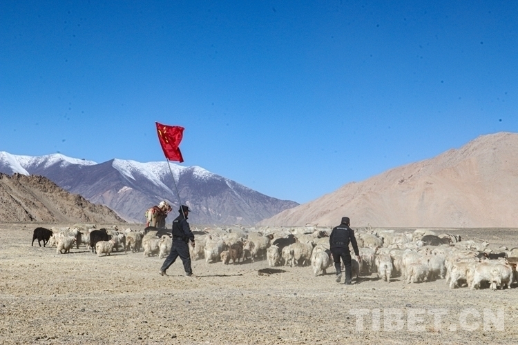 中國西藏網訊 季節變換、冬意漸濃,隨著草原牧場氣溫降低,西藏阿里地區日土縣又到了牧民轉場“冬窩子”的日子。10月28日,西藏阿里邊境管理支隊日土邊境派出所民警走進日土縣熱角村,“增援”派出所長期駐守在此的熱角村警務室,與牧民共同趕著牛羊群帶著物資,浩浩蕩蕩地從夏季牧場遷徙至冬季牧場。