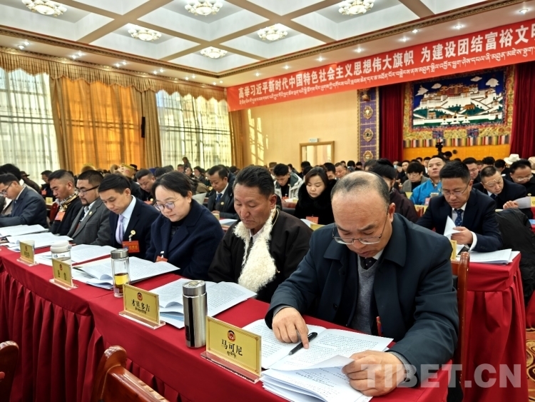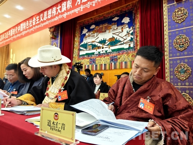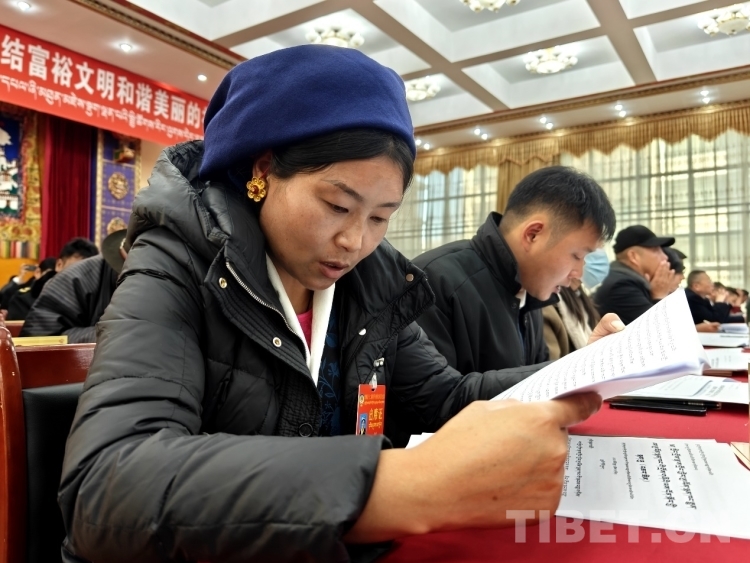圖為政協委員認真審閱會議資料 攝影:次旦拉姆