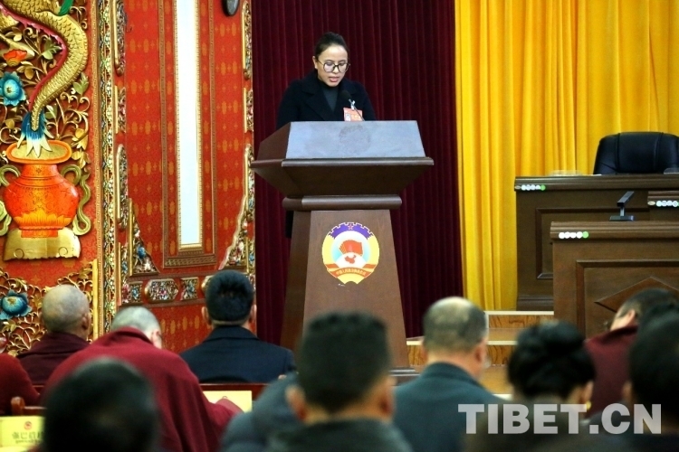 圖為強巴措珍在拉薩市政協第十二屆四次會議第二次全體會議上發言 攝影:王佳豪