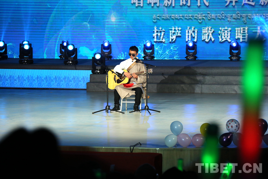 資料圖:視障人士拉巴桑珠就讀于拉薩師范高等專科學校,他在拉薩師范高等??茖W校校園“十佳歌手”大賽中獲得冠軍