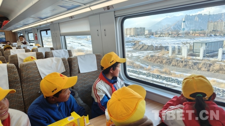 圖為多白鄉小學生乘坐高原動車組列車前往拉薩