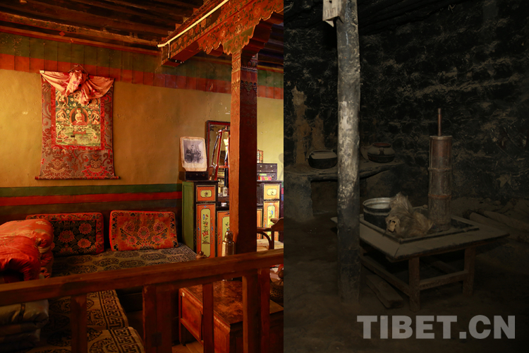 拼版資料圖:左側為西藏日喀則江孜帕拉莊園內莊園主人的房間內飾,右側為帕拉莊園農奴的住所內部 攝影:姚浩然