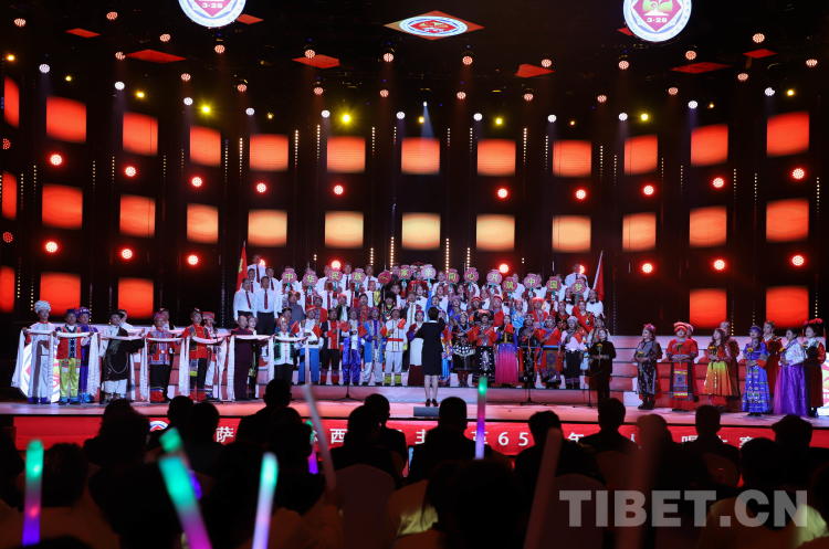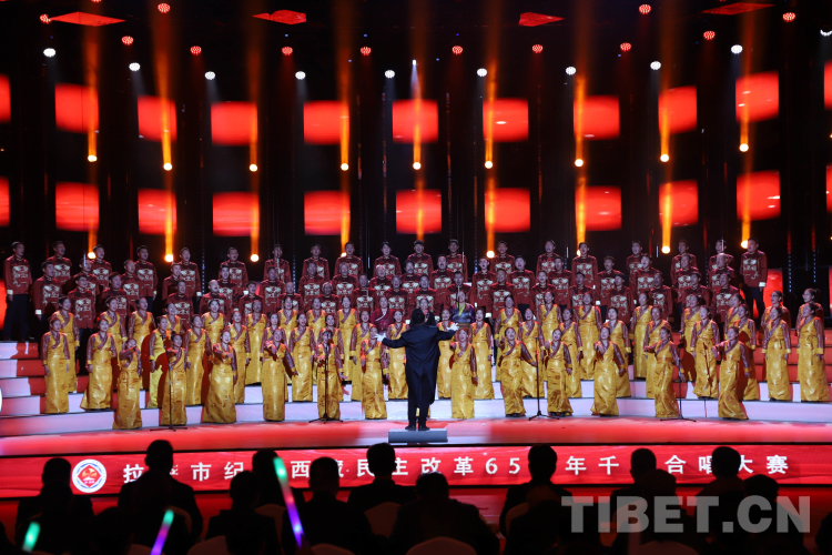 中國西藏網訊 3月27日晚,《盛世中國 幸福西藏》拉薩市紀念西藏民主改革65周年千人合唱大賽在拉薩師范高等專科學校體育館舉行。