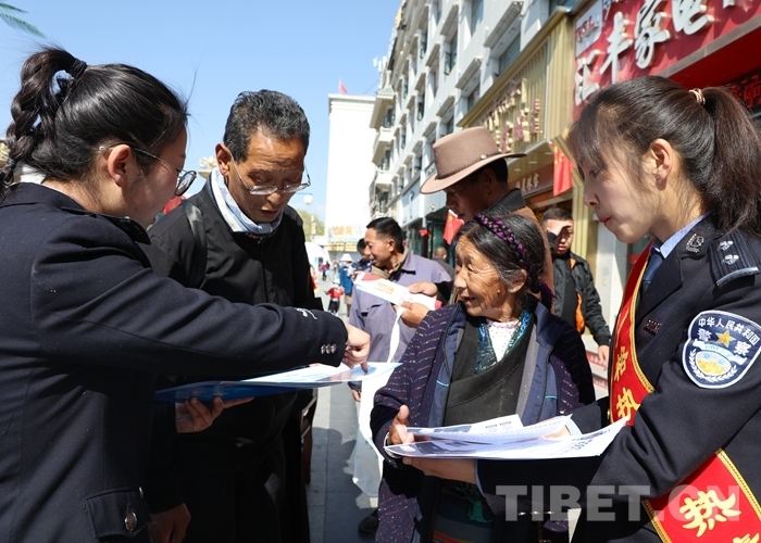 圖為西藏邊檢總站執法調查支隊民警在街頭宣講