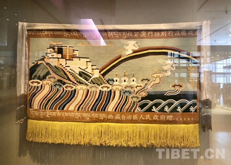 西藏自治區人民政府向澳門贈送了一幅掛毯《山高水長》。掛毯采用西藏傳統的藏毯工藝,以卷軸畫為表現形式,結合鮮艷、明快、大方、富有視覺張力的民族繪畫藝術制作而成,具有濃厚的藏族文化氣息。